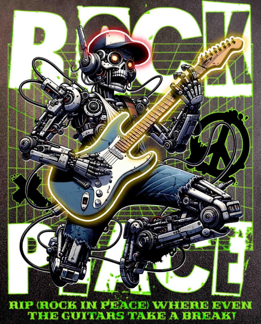 Denna konstnärliga och urbana illustration föreställer ett skelett som åker skateboard i en dynamisk och energisk pose. Skelettet är klätt i en röd t-shirt och gröna shorts, vilket ger en stark kontrast mot den ljusa bakgrunden. Dess beniga hand gör en avslappnad “rock on”-gest, vilket förstärker den rebelliska och fria känslan av streetkulturen.