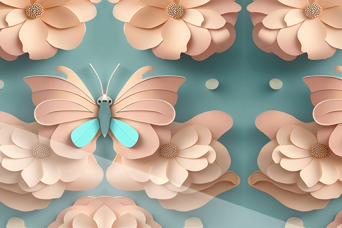 • 3D-pappersliknande struktur i mjuka persiko- och turkostoner.