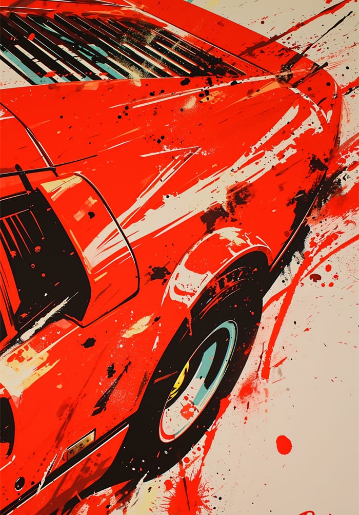 Varje linje på karossen är en attack. Färgen ser ut att ha sprutats på i farten. Däckspår som penseldrag, ytor som blöder av rörelse. Inte putsad – märkt. Och stolt över det.