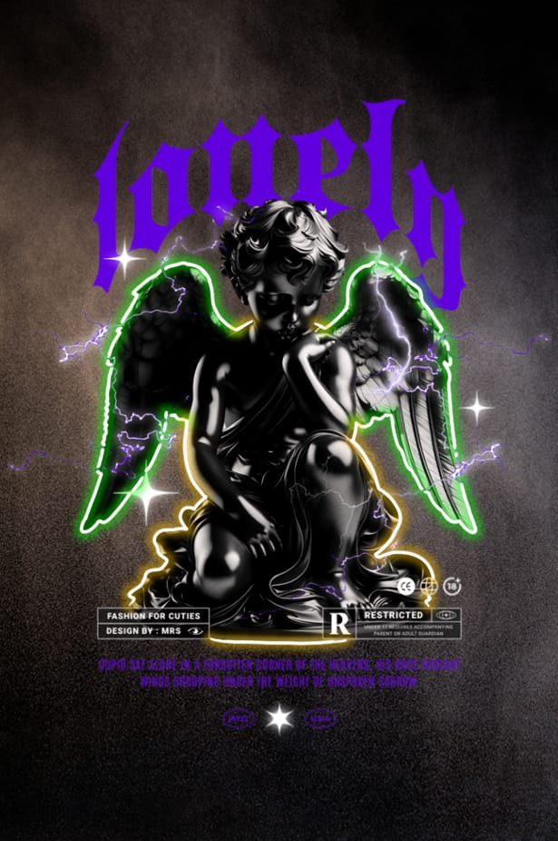 En fallen ängel i skuggan av sitt eget ljus – där neon möter natt och skönheten viskar genom tystnaden. Lovely är mer än ett ord, det är ett sår i stjärnstoff, ett hjärta som bultar i vakuum.