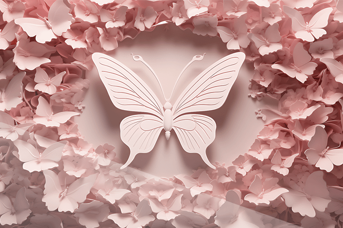 En fängslande sammansmältning av natur och teknologi. Den centrala fjärilen omges av en neonliknande lyster, vilket skapar en känsla av rörelse och liv. Den mjuka, pastellfärgade omgivningen förstärker dess närvaro och ger en drömsk och harmonisk atmosfär.