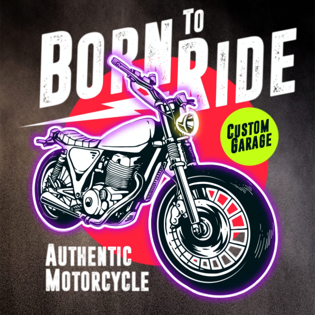 custom bike design, neon motorcycle art, född att köra, biker lifestyle poster, autentisk hojkonst, epoxy glänsande hoj, retro speed, vägresenärens själ, garage estetik, ride forever vibes