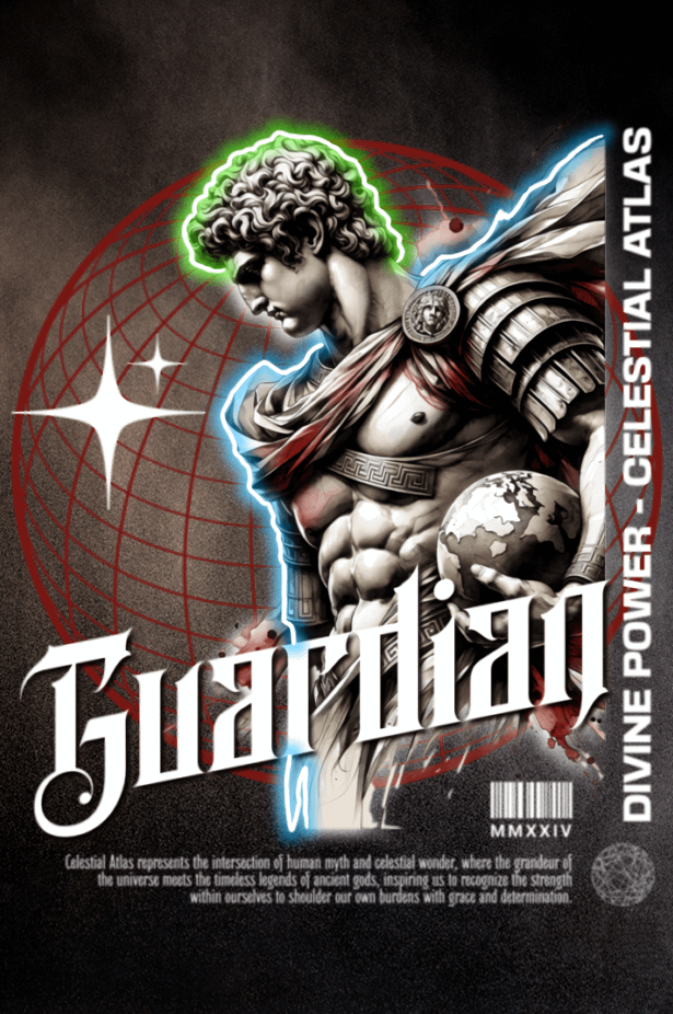 väktare, himmelsatlas, modern mytologi, antikens styrka, stjärnvakt, neoklassicism, kraftsymbolik, gudarnas arv, kosmisk plikt, visuell myt