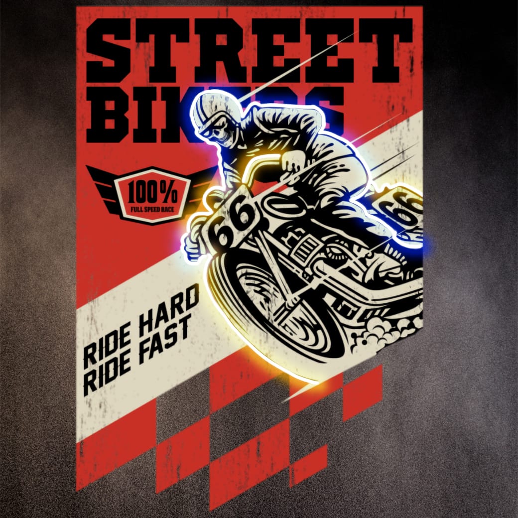 retro racer neonkonst, old school streetbike poster, 66 outlaw legend, epoxi vintage mc art, dirt fury grafik, speed junkie tribute, neon race aesthetic, biker nostalgia blaze, urban race krigare, klassisk mc med modern gnista.