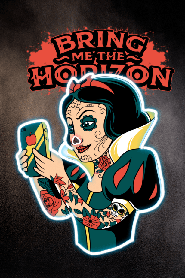 bring me the horizon merch, tatuerad snövit, sockerskalle disney punk, gothisk sagodrottning, selfie dödsestetik, neonförgiftat äpple, emo prinsessa, rebellisk sagobläck, mörk disney mashup, odöd spegelsjäl.