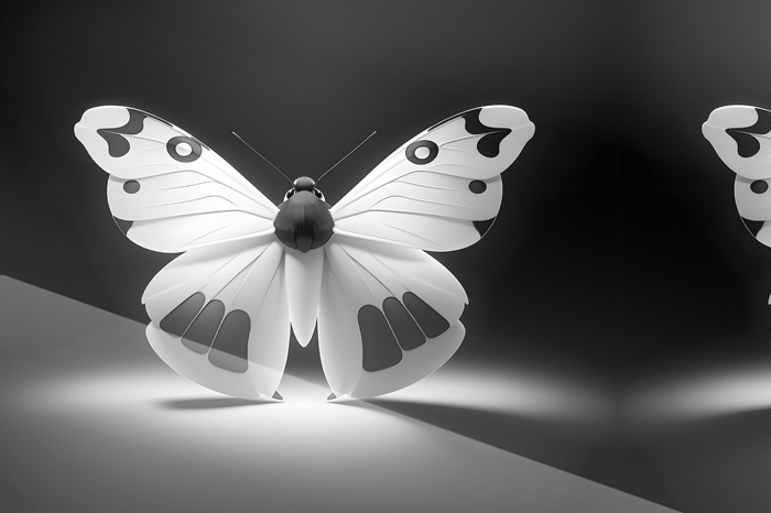 grafisk fjäril, rosa neon, svartvit estetik, modern konstfjäril, futuristisk design, spotlight, digital konst