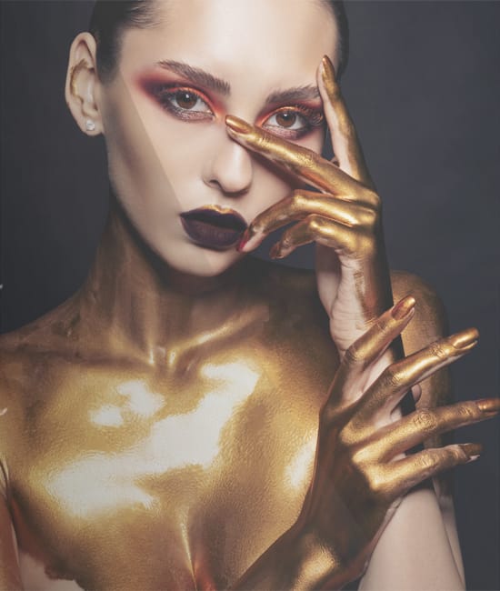 Gyllene skönhet djärv & elegant kvinna porträtt
