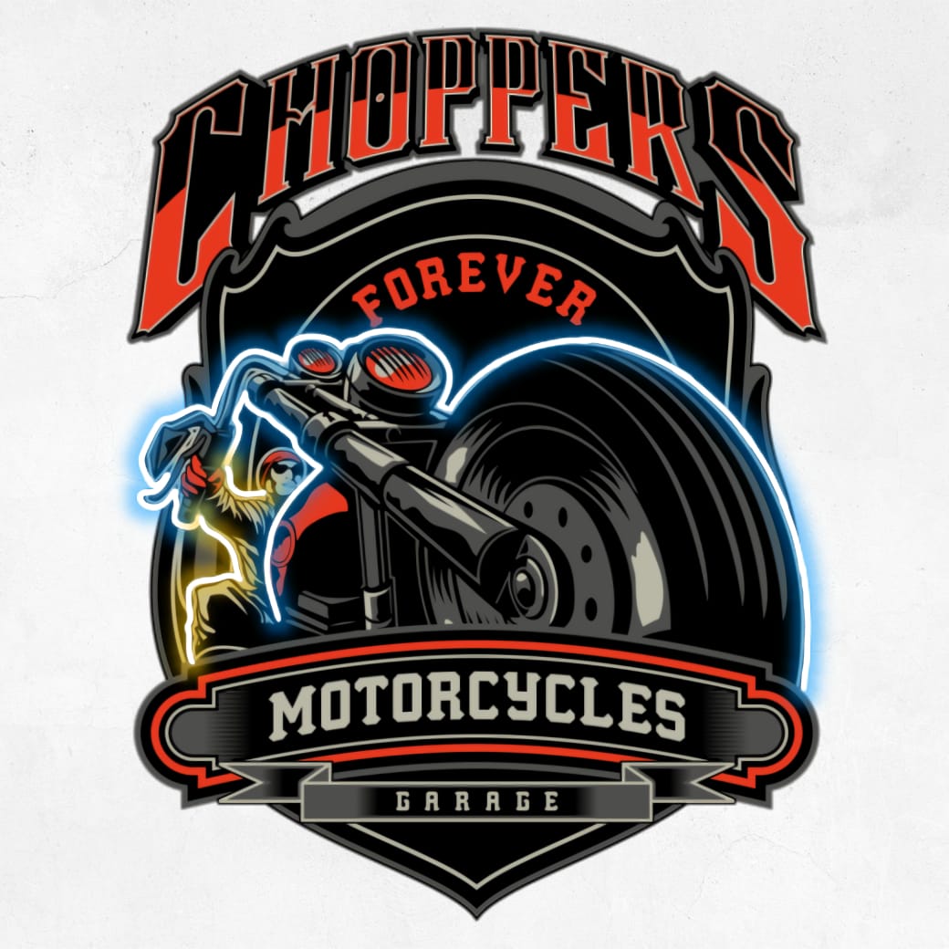“CHOPPERS FOREVER” är inte ett slogan – det är ett löfte. Det handlar inte om att följa trender. Det handlar om att köra tills världen slutar snurra. Garage. Brotherhood. Gasoline.