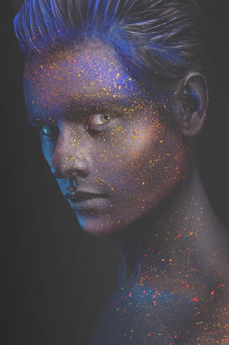 Kosmisk Glöd – Djärvt och Elegant Neonporträtt