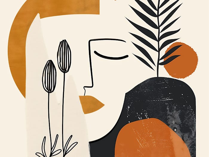 Neon Tavla Abstrakt Botanisk Väggkonst är en elegant kombination av abstrakt design, naturinspirerade element och jordnära färgtoner. Konstverket föreställer ett fridfullt ansikte skissat i en kontinuerlig linjestil, tillsammans med enkla botaniska former och organiska kurvor som ger en känsla av lugn och balans. Kompositionen använder varm terrakotta, beige och matt svart för att skapa harmoni och visuell attraktionskraft – perfekt för moderna, bohemiska eller skandinaviska inredningar. Tryckt på högkvalitativ canvas eller konstpapper är detta konstverk redo att lyfta din inredning med sofistikation och originalitet. Oavsett om det hängs i vardagsrummet, sovrummet, hallen eller kontoret fungerar det som en stilren och tankeväckande mittpunkt som kompletterar minimalistisk och kreativ inredning.