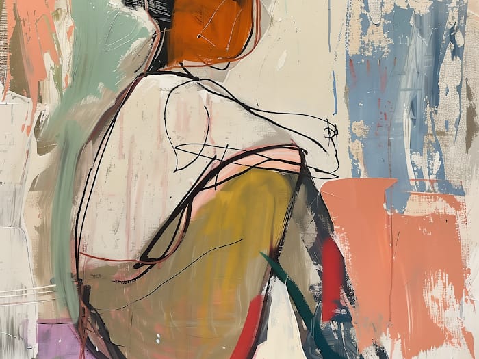 • Abstrakt figurativ stil med uttrycksfulla linjer