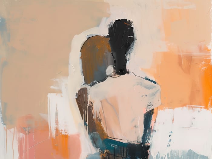 Neon Tavla Abstrakt Intimitet är ett stillsamt men kraftfullt konstverk som uttrycker närhet och känslomässig samhörighet. Målningen visar två figurer i en intim omfamning, med ryggen vänd mot betraktaren. Detaljerna är abstrakta, men känslan av värme och trygghet är tydlig. Färgpaletten består av varma jordtoner, mjuka orangea inslag och neutrala kontraster som skapar lugn och balans.