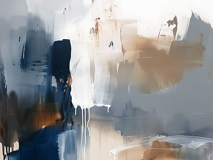 Neon Tavla Abstrakt Målning i Blå, Beige och Vita Toner är ett konstverk som förmedlar stillhet, djup och rörelse genom sin balanserade färgpalett och flytande penselteknik. De kontrasterande men harmoniska färgerna – från djupt marinblått till ljus beige och vitt – smälter samman i en abstrakt komposition som inbjuder till tolkning.