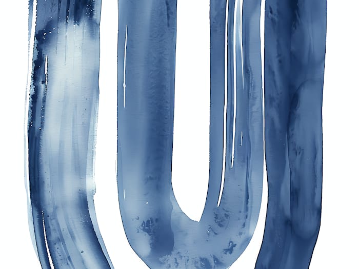 “Djupt Vatten” är ett abstrakt konstverk som fångar känslan av djup och rörelse genom vertikala penseldrag i olika blå toner – från marinblå och indigo till dimblå akvarellskiftningar. De mjuka övergångarna och flödande linjerna för tankarna till vatten som rör sig långsamt i tystnad.