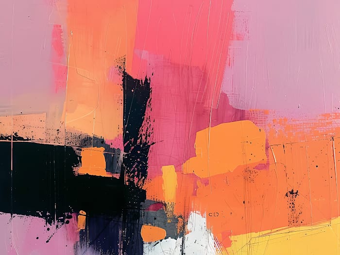abstrakt neonkonst, färgstark tavla, modern väggkonst, magenta och orange målning, svart kontrast i konst, urban expressionism, samtida konstverk, konst med rörelse, kraftfull canvas, färgrik inredning, statement piece, målning med struktur, explosiv färgkonst