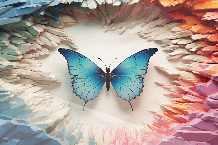fjäril, neonkonst, futuristisk design, färgspel, ljuskonst, fantasivärld, modern estetik, konstnärligt uttryck, surrealistisk skönhet.