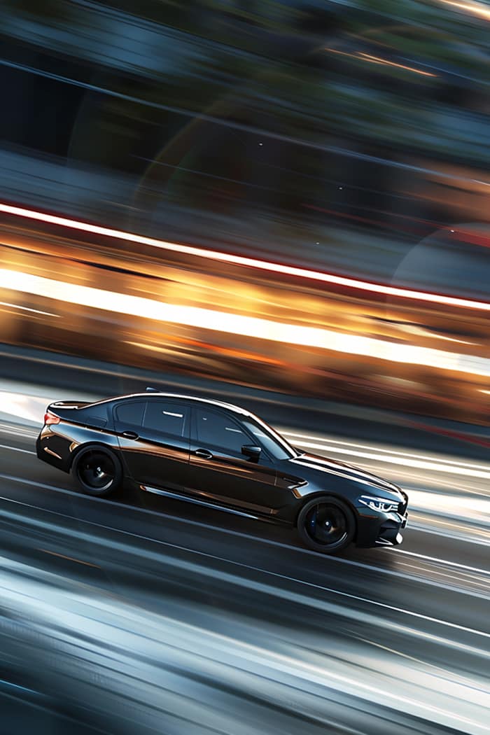 En svart sedan spränger tystnaden i nattens elektrifierade stad. Med glödande hjul och neonkanter lämnar den inte spår – bara energi. En blixt i periferin. En rörelse som aldrig stannar.