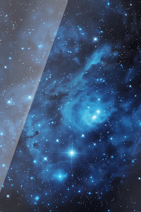 Denna fascinerande konstverk fångar den oändliga skönheten i rymden med en djupblå nebulosa fylld med lysande stjärnor. De skimrande blå nyanserna och de glittrande stjärnorna skapar en känsla av lugn och förundran, som om man blickar in i universums själ. Perfekt för att ge ditt rum en mystisk och elegant atmosfär.
