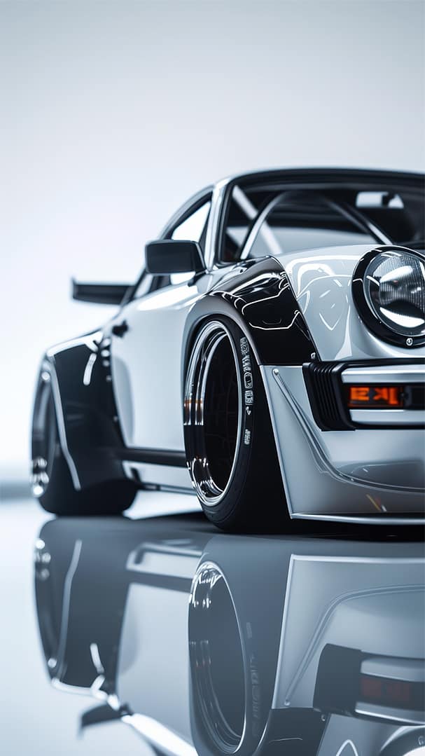 Det är inte bara en bil – det är en entitet. Tyst, laddad, redo att bryta ljudvallen utan ett ljud. En cyberrelik från ett parallellt universum där stil är religion och ljus är språk. Här står TurboGlow 911 – stilla, men oändligt levande.