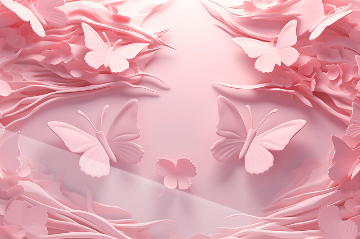 • Mjuka 3D-vågor av blad och blommor i olika rosa toner.