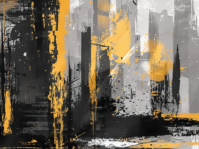 neo tavla, neon tavla, urban konst, industriell konst, abstrakt konstverk, gul och grå tavla, street art väggkonst, modern konst för hemmet, arkitektur inspirerad tavla, neonstad, city art print
