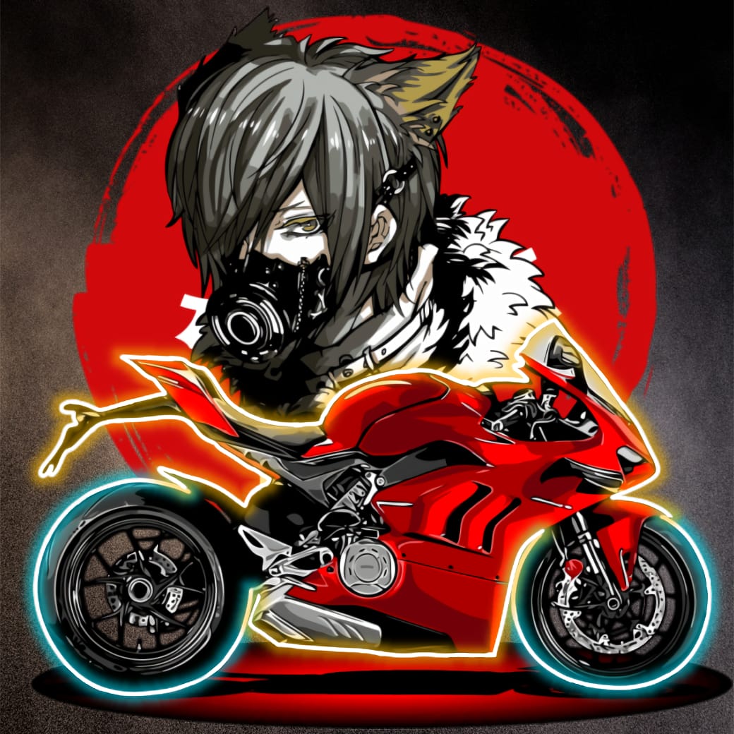 anime biker varg, neon street warrior, postapokalyptisk MC-ryttare, röd superbike design, toxic drift wolf, epoxykonst animehjälte, cyber instinct fury, outlaw anime aesthetic, vargmask rider, midnight pack ghost.